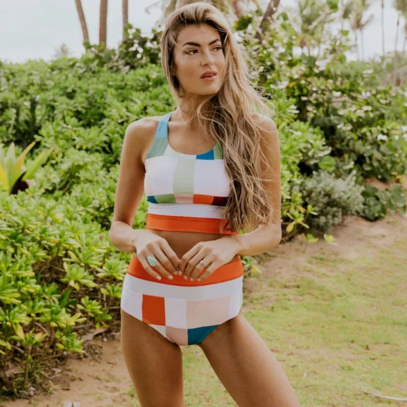 Sport High Waist Gingham Bikini Swimsuit Set Two Piece Set